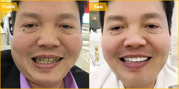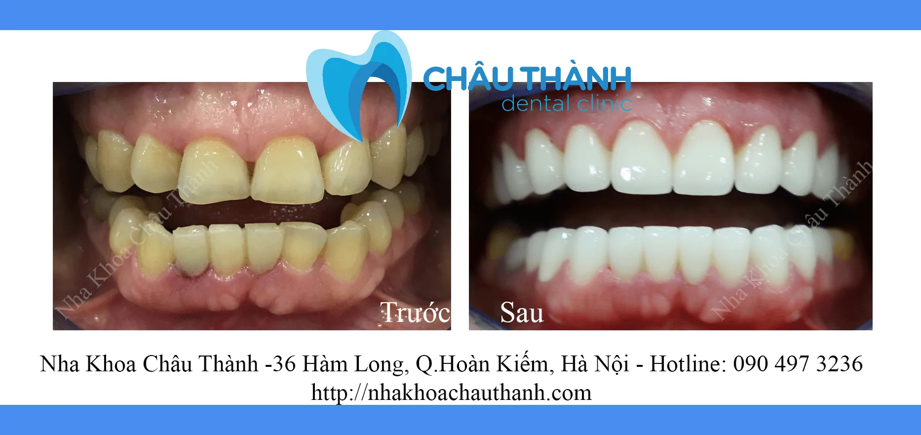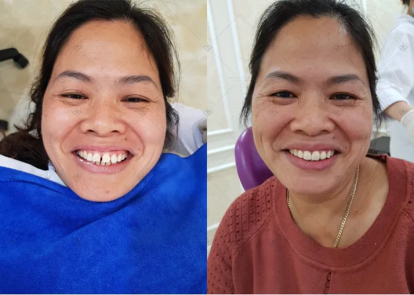 ảnh trước và sau khi bọc răng sứ tại nha khoa Châu Thành